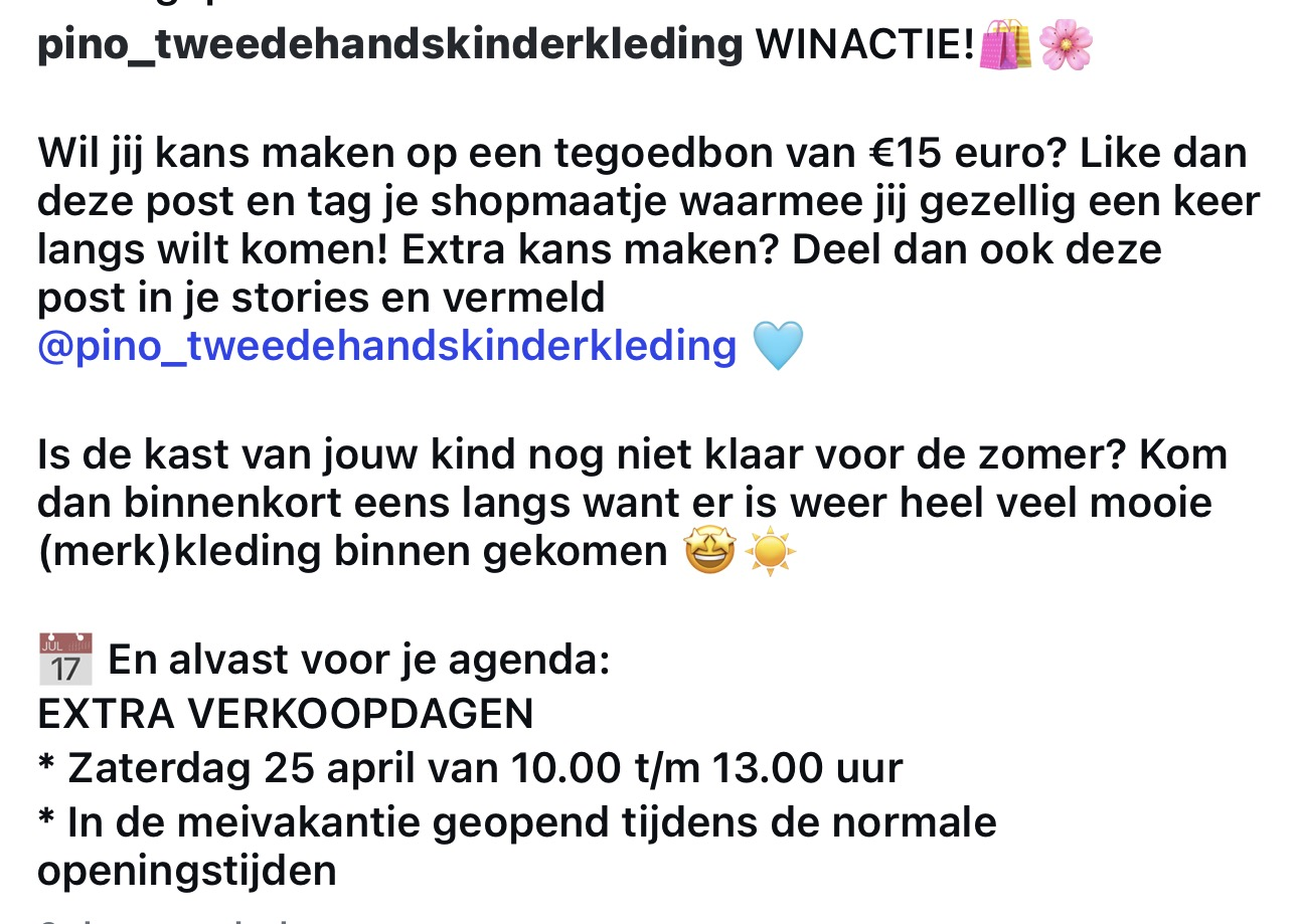 Lees verderKijk voor een leuke winactie voor een bon van € 20,00 op onze facebook en instagram pagina. Altijd leuk om te winnen.