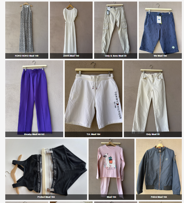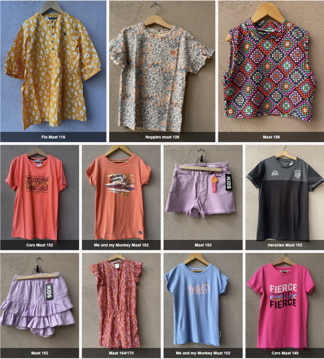 Neem snel een kijkje bij een klein deel van de mooie kleding die weer binnen is gebracht. Wil je echt alles te zien, kom dan naar onze winkel en verbaas je over onze prachtige collectie.